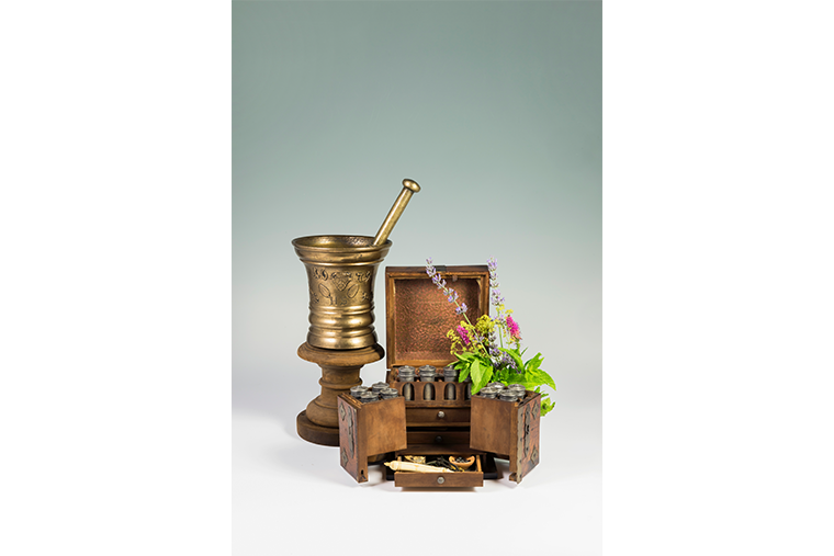 Kräuter, Mörser, Pillendreher